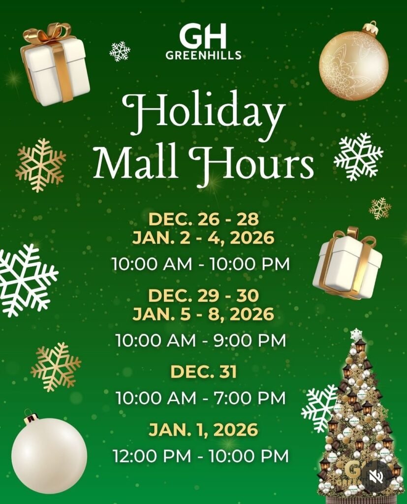 Known for its Christmas Tiangge, Greenhills is extremely popular in December—expect longer, shopper-friendly hours.
